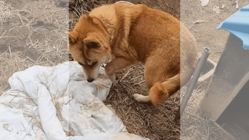 A rescue team heard of a guard dog in need, so they went to check it out. When the task force arrived, they said it was in worse condition than expected. The dog was tied with a chain in the tight place and she had just given birth to puppies, But its owners were not worried about her or their pups.