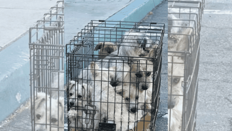 Outside a rescue organization in Chino Hills, California, she stumbled upon a tiny cage packed with seven desperate dogs, a sight that would haunt her for days to come.
