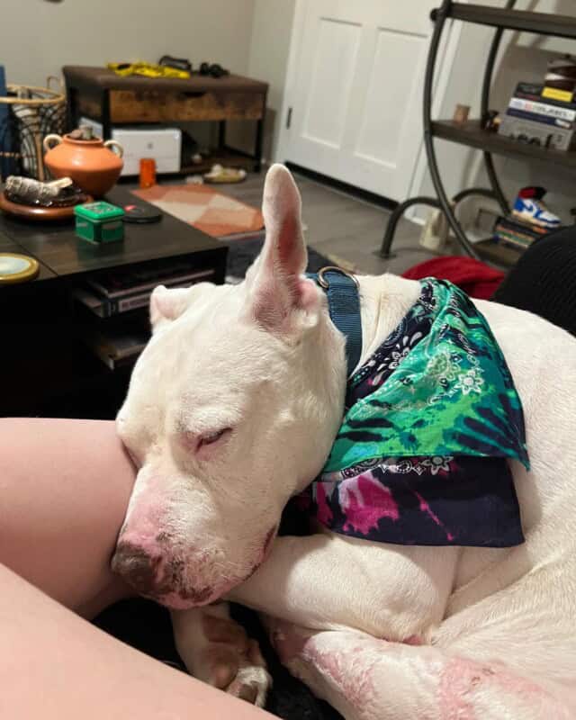 Chiquitita enjoyed snuggling on the couch with them and riding in the car. The caring her foster family provided allowed her to flourish as a happy pup. Chiquitita was top of the world.